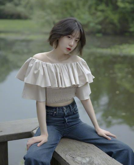 大家很期待的夏季BM风来啦,上身奶茶色的短袖完美的露出小蛮腰的视觉观感,这么纤细的腰围大概还没有A4纸那样大吧,妥妥的惹人羡慕,让人的关注点都停留在腰上,不过她的服装也值得参考哦,毕竟是出了名的衣品好。翻领荷叶花边的领子蓬松感非常强,这样就很好的遮挡上半身的身材缺点,看起来更均匀了。