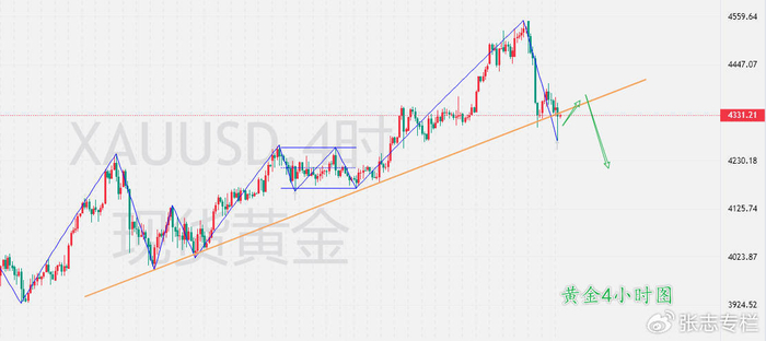 总之在当前的大周期调整背景下,每一次反弹就是高抛的机会。上方日内压力关注4330--4370,下方支撑4273--4237