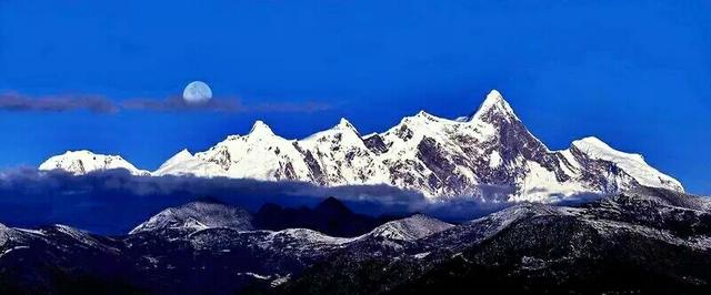 而当月亮升起在南迦巴瓦身后,整座山峰沉浸在清冽的月色中,更成就了一副恬静迷人的月照银山图。