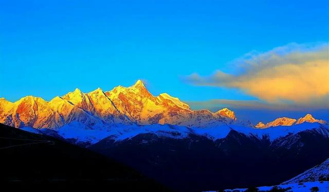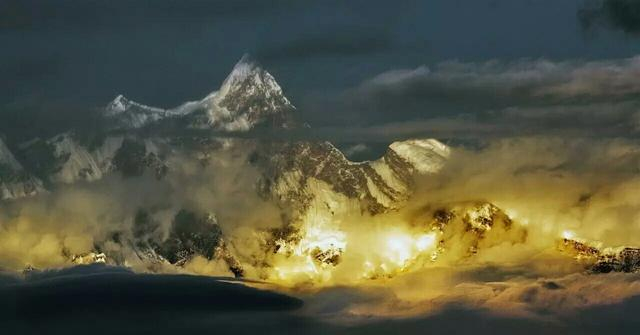 当朝阳打亮南迦巴瓦,整座山体逐渐变成金色,就形成了震撼人心的奇景“日照金山”。