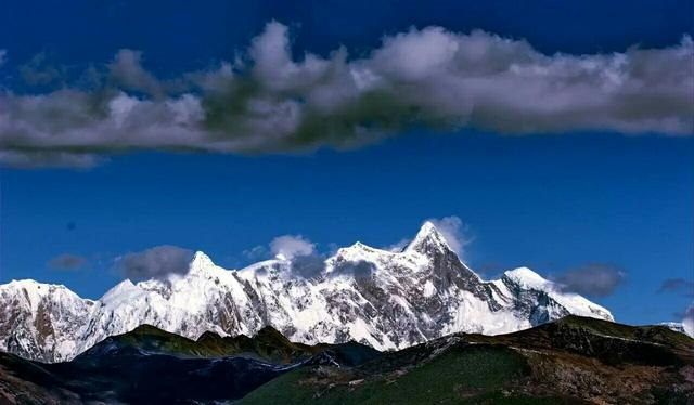 南迦巴瓦峰巨大的三角形峰体终年积雪,云雾缭绕,高空风造成的旗云被人们看做是神仙燃起的桑烟,这里是神仙居住的地方。