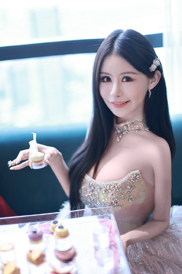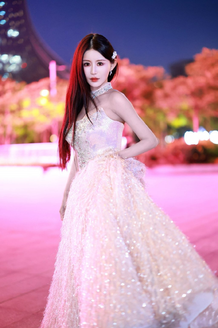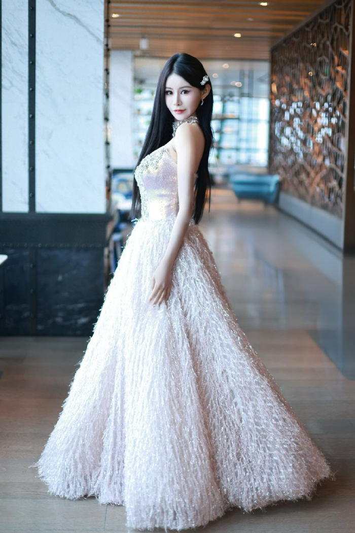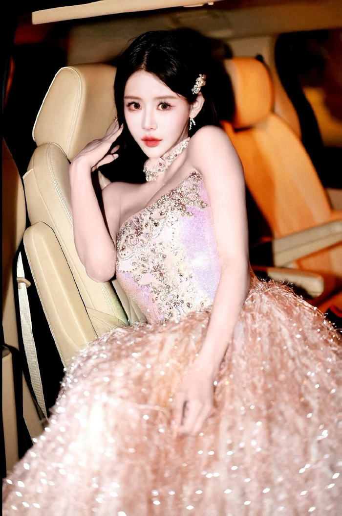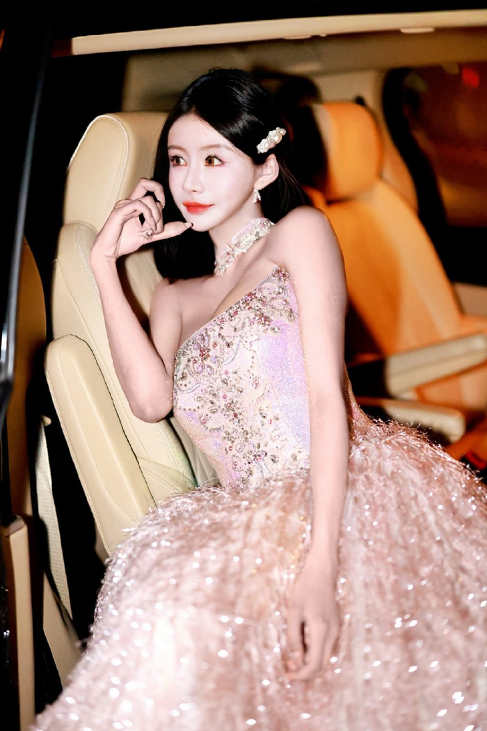 周楚娜(周艺)此次亮相的绝美造型,彻底颠覆公众既往印象,量身定制的粉金香槟长裙以手工刺绣点缀,曳地裙摆流淌着星河般的光泽,完美呼应盛典“鎏光新境”的主题意境。抹胸设计凸显其标志性天鹅颈与直角肩,锁骨线条如雕塑般精致;高腰剪影巧妙勾勒出纤细腰肢与苗条身形,步履间尽显轻盈体态。尤为引人注目的是她标志性大眼眸依旧璀璨如星,但褪去了过往手术痕迹带来的僵硬感。在盛典新增的“镜头签到”高清怼脸环节,她直面特写镜头,双眼自然闭合,眼波流转间透出灵动生机。