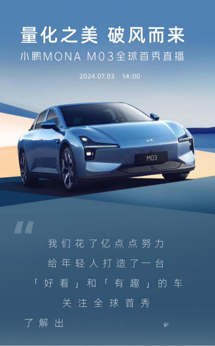 2024年下半年,定位为“专为年轻人打造的纯电轿跑”的MONA M03上市,在这款新车身上,外界终于看到了小鹏“自我变革”的动作。