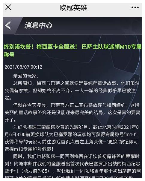 这两天足坛最轰动的新闻肯定是梅西离队,《欧冠英雄》也为各位玩家送上巴萨梅西的礼物,全服即送蓝卡梅西,拥有球王卡片就是那么简单!
