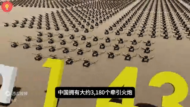 10. 牵引火炮:美国拥有大约 694 个,中国拥有大约 3180 个。