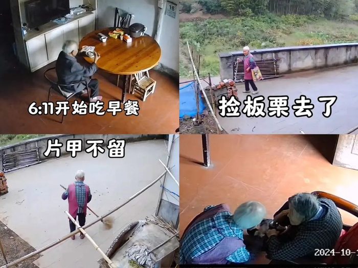 有人给奶奶家安了个摄像头,本想着偷看奶奶的日常起居,以防她一个人住出了事没人照应,没想到却看到了奶奶丰富多彩的一天。