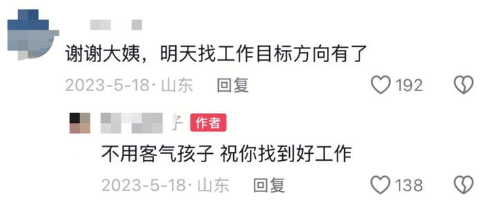 大娘这樱桃核一吐,吐出了裘千尺吐枣核的气势。评论区的年轻人仿佛得到了真传一般:“谢谢大姨,明天找工作的目标方向有了。”