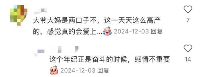 感情戏拍多了,大娘大爷的演技也是越发娴熟,连网友都忍不住开始担心:会不会因戏生情?