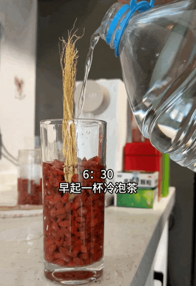 每天早上起来,周大爷都会例行喝一杯冷泡枸杞,开启新的一天。