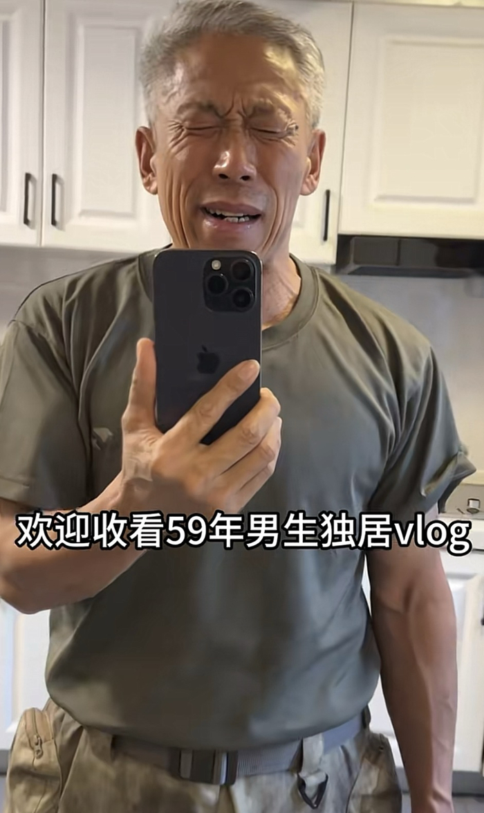 一身腱子肉的周大爷,在短视频平台有一个固定栏目:59年男生的独居vlog。