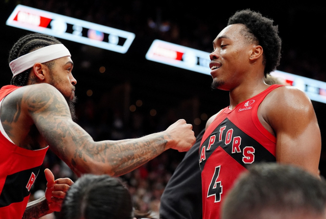 他是2021年的4号秀,高顺位的他菜鸟赛季表现也很出色,场均有15分7篮板3助攻进账,成功拿到了最佳新秀奖杯。此后巴恩斯一直是球队的重点培养对象,三年级时,数据飙升到了场均19.9分8.2篮板6.1助攻,是公认的全能型大前锋,颇有字母哥的风采。不过猛龙队的战绩依旧糟糕,所以巴恩斯并没有得到认可。