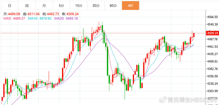 黄金技术面分析:当前盘面来看,黄金潮起潮落自有时,金价涨跌亦循势,周五黄金受非农的影响之下再次突破了4500一线附近,并且最高触及到4517后止步回撤修正,而美盘尾部最低下跌于4481附近后再度上行,短线内一方面是趋势所引起的连续性爆发,另一方面是因为非农就业数据的影响,美国12月非农就业数据不理想,市场预期美联储可能会降息,加上地缘风险,导致黄金避险情绪高涨,多头目前仍然处于主导地位,从技术面而言,日线均线系统也在稳步上行,短线内继续呈现了多头的排列,而周线也是在连阳之后收于单阴的态势,而这种走势也是标准的多头回撤修正的单阴模式,而目前各个指标均处于强势,红色能量柱继续放大,上行趋势明显,后期仍有望继续冲击历史新高4550一线位置,而下方的首要支撑则维持于周六凌晨的回撤低点4480一线位置,此位置也将有可能是后期的多空分水岭,则下周我们还是先围绕于多头形态进行布局,如多次承压回撤的话,则再考虑调整方向,则下周一如先回撤于4495-90附近做多,防守4480,目标上看4540附近。综合来看,黄金下周短线操作思路上贺博生建议以回调做多为主,反弹高空为辅,上方短期重点关注4540-4560一线阻力,下方短期重点关注4490-4470一线支撑。