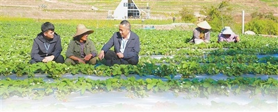 镇沅彝族哈尼族拉祜族自治县纪检监察干部(前排左、右)走进菜田,向农户了解惠民惠农政策落实情况。 刘庆鼎摄