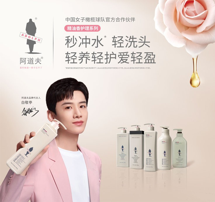 今年5月,阿道夫更签约青年演员白敬亭为品牌代言人、签约中国女子橄榄球队为品牌形象大使,带来“秒冲水,轻洗头”的洗护新理念、新体验,开启秒冲“轻时代”,将阿道夫的匠心品质和“爱的味道”带给更多消费者。