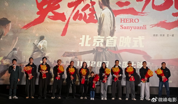 首映礼尾声,导演王一诺与全体主创向观众深鞠躬。从广州三元里抗英遗址到各地采风,这个坚韧的青年导演也承受了极大的压力,影片虽然是一部中小成本的经费体量,却拍出了弥足珍贵的意义和价值。正如王一诺所言:“这部电影致敬我们的先辈们,他们的勇毅如星火般照亮了民族暗夜,他们都是英雄。今天,我们用光影把民族的精神传承下去。”
