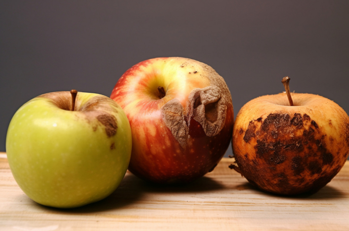 ♦发霉腐烂变质:即使腐烂口再小,整颗水果都不能再吃了!