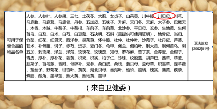 首先,最基础的信息:川贝归属于中药,且不在药食同源普通食品类目里边。