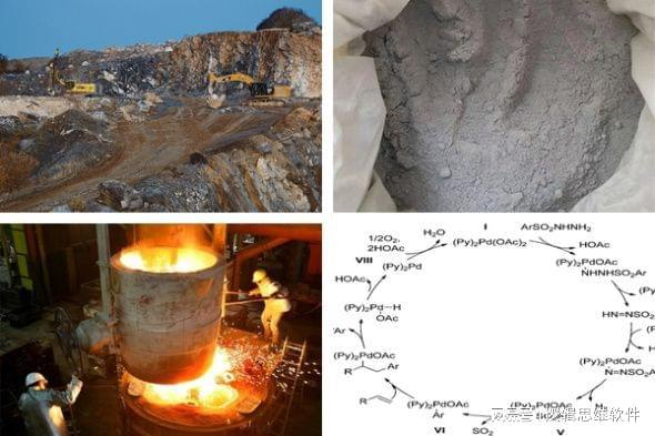 通过形成关于回收技术的金属络合物,多种金属可以稳定化络合物离子。即在关于回收技术中,两种催化剂的组合是新颖且相当有利的,这两种催化剂的相互之间不会造成不良影响,并且对多种金属具有有效的络合功能。在关于回收技术的电镀液中,可以以高电流效率且不利用有害氰化物地形成具有任意组成的贵金属回收提取钯铂铑粉末渣镀层,因此该电镀液比常规的氰化贵金属回收提取电镀液更具优势。