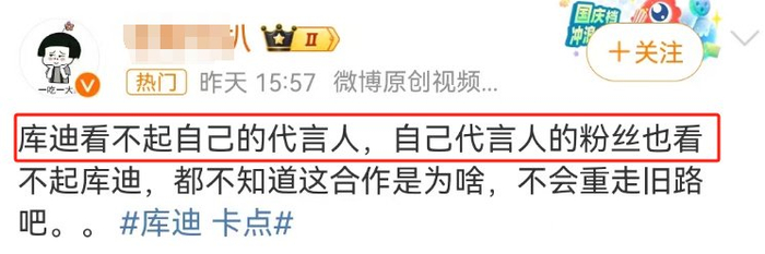 这明明是一条看起来再正常不过的日常联动微博,但却把库迪德芙推向了风尖浪口。库迪不仅被王一博粉丝喊话,还被带话题#库迪 卡点送上了热搜。