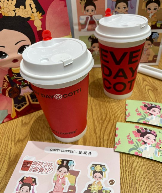 说好是商战,库迪自然也没忘记“内涵”瑞幸:“深夜的酒伤你的肝,清晨的粥养您的胃”。而且在一些社交媒体中,网友也发现了“烈酒伤你,米乳暖你”的宣传语遍地都是。不难看出库迪的营销心机,一边蹭茅台瑞幸酱香拿铁的热度,一边还开启倒油营销内涵对手。双重buff叠加带火了自己的新品,总比库迪独自上新品,流量要强得多。库迪不仅懂得养胃还懂得暖心,比如联名《甄嬛传》同样很会玩。去年恰好是《甄嬛传》出道12周年,这可是曾经火遍全国的影视剧IP,也是剧迷的电子榨菜,常看常新。库迪盯上了阿胶在剧中出镜率很高,这一波联名就应景推出了阿胶拿铁,同样不忘玩谐音梗“这杯甄甄好”。