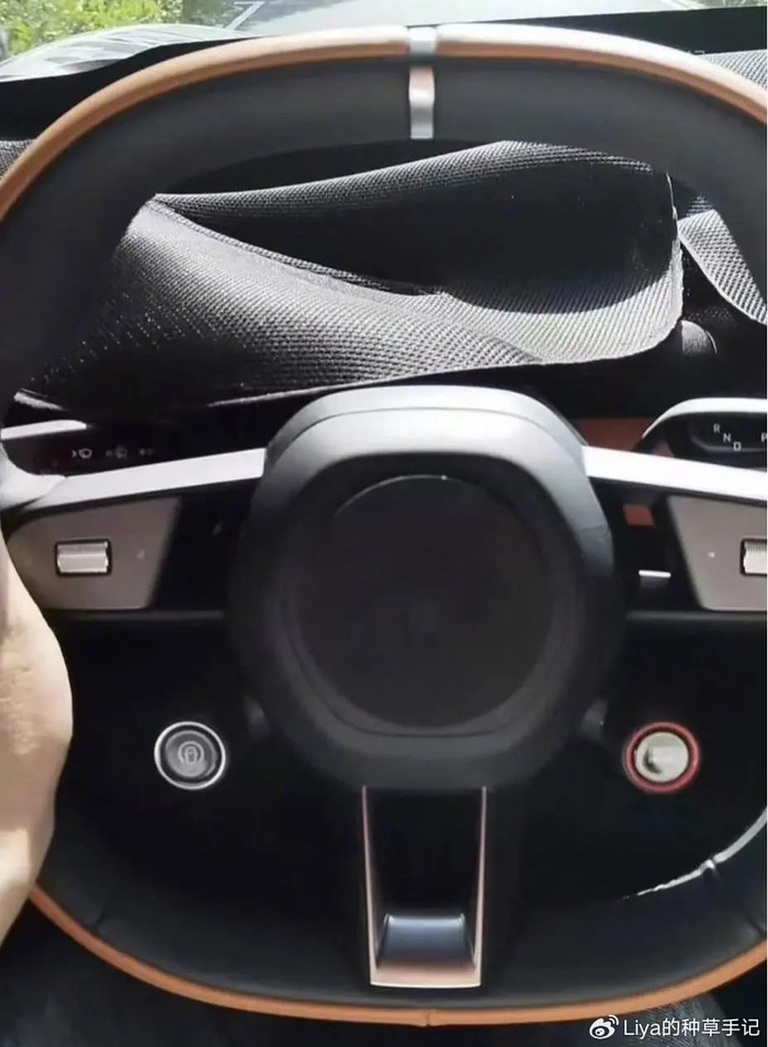 但只是看着外观已经不能满足米粉们的胃口了,有网友曝光了小米YU7的内饰图,相比之前爆料采用碳纤维+翻毛皮方向盘不同的是,这次曝光的车型方向盘,采用了普通的皮质,双拼配色。