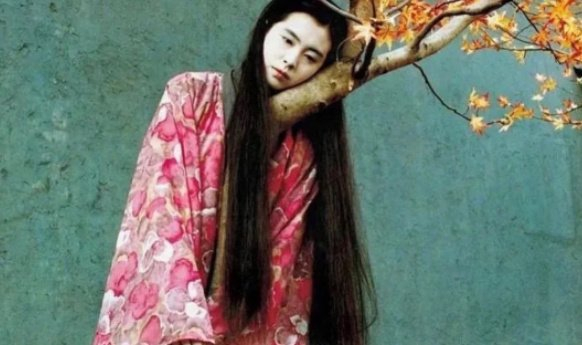 电影有很经典的一个场景,阿婴怀抱树干将头放在树杈,一身红衣,绣满大片鲜红的花瓣。诡异阴森的气氛。