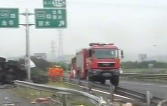 巨大的撞击使得车里所有人都飞了起来,很快,高速交警林杰就接到了报警电话,“到丽水出口的一辆大巴车翻掉了,撞的,一车子人都在里面。”