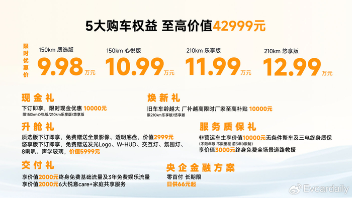 5月26日,“生活从此 日新悦意——中国一汽奔腾悦意电混之夜暨奔腾悦意07全球上市”发布会盛大召开,中国一汽逐日动力BMP超级电混首款力作、超大大大电混SUV——奔腾悦意07正式发布。延续悦意序列「时空光影」美学,奔腾悦意07以“超大续航、超大性能、超大可靠”三大产品价值,实力铸就千家万户都买得起的高品质新能源汽车。新车提供150km/210km两种超级电混共4款车型,上市指导价9.98万元-12.99万元,非质选版车型限时享10000元现金优惠,210km超级电混版可享至高10000元置换厂补,下订可享四重大礼,还可叠加国家/地方政府以旧换新补贴,重新定义中型电混SUV的品价比标准。
