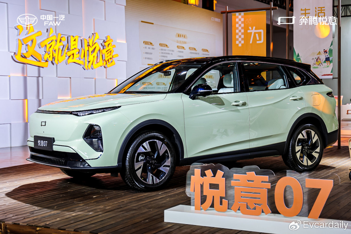 奔腾悦意07是继“7万级大大大纯电SUV”悦意03后,一汽奔腾悦意序列推出的又一款重磅力作,也是悦意P系列首款超级电混车型,定位“9万级超大大大电混SUV”,在造型、续航、能耗、性能、安全、舒适、空间等全维度为中国家庭提供高品质出行体验。