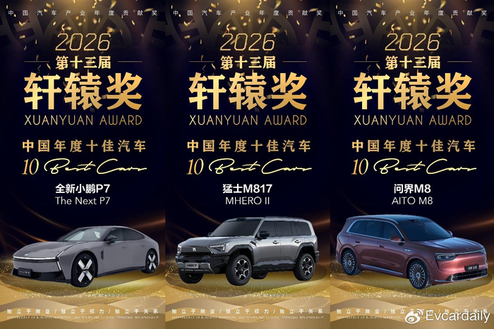 “中国年度十佳汽车”为问界M8、猛士M817、全新小鹏P7、理想i6、尊界S800、全新MG4、吉利银河M9、魏牌全新高山、蔚来全新ES8以及荣获中国年度汽车的极氪9X共计十款车型成功入选。这十款车型覆盖不同细分市场,凭借各自的核心优势展现了中国汽车产业的多元创新活力与综合实力。