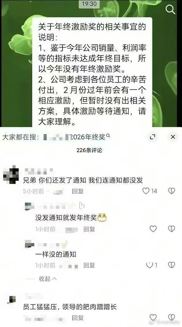 “大家能不能联合起来给全公司发邮件,抗议一下为什么不发年终奖,说实话挺失望的。”这个元旦,X公司的员工们过得有点不自在。原因是按照以前的惯例,近期应该发放2025年的年终奖。对于不少员工来说,这是收入中很重要的一部分。但是,今年该公司内部已经直接通知,取消了年终奖。