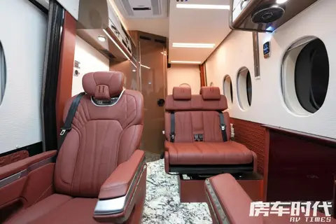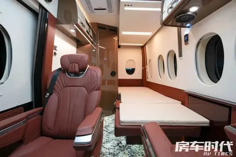 值得一提的是,车厢两侧的窗户仿照了机舱窗户的设计,多扇圆窗让人仿佛置身商务舱中。