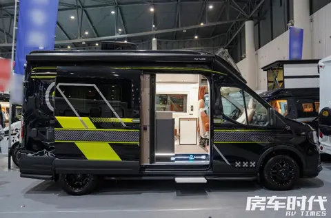 车辆外侧配备了进口电动伸缩踏步(中门设计)、重力加水口(营地加注及外置淋浴功能)、3.5m手动遮阳棚、进口户外贯穿式照明灯等实用附件,其中遮阳装置经过熏黑处理,与车身整体造型更为统一。