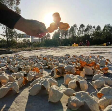 在开皮之后,需要将果皮置于阴凉通风处进行晾晒4-5个小时,让柑皮中的水分缓慢蒸发的同时,有效保留柑皮内的营养物质。