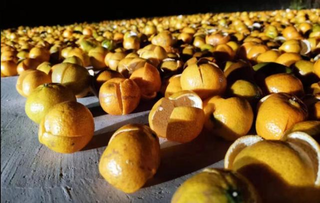 在陈皮制作的第一个环节便是采果,而优质的原料也是保障陈皮品质的基础,皮质越好内涵物质也越丰富,后期陈化效果也越好。在采果的过程中,严格按照“破损果不采、阴雨天不采”的原则,保证柑果丰富的内含物质。