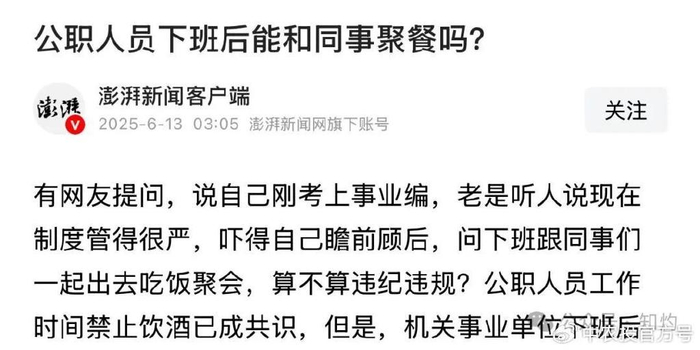文章还提到:作为机关事业单位工作人员,我们要心中有规矩,既不能过分拘束,也不能放任自流。正常的同事之间交往是允许的,关键是要守住底线,不触碰红线。