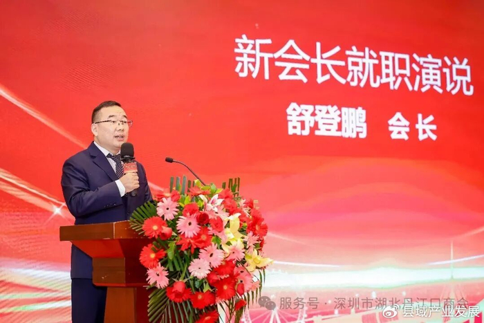 会议伊始,丹江口市招商服务中心作了招商推介,大会还举行了会旗交接仪式,与会领导为新当选班子成员授牌;深圳市湖北商会会长曾胜学、深圳市十堰商会会长王立平现场致辞;新当选会长舒登鹏发表就职演说。