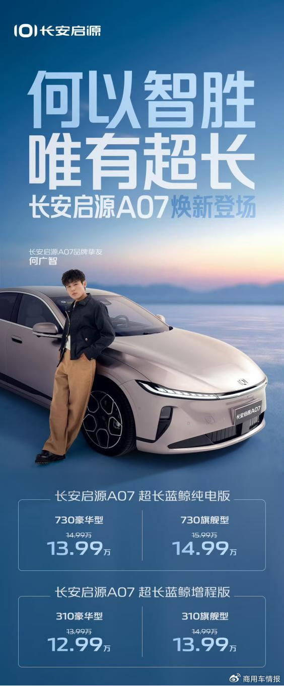 此次焕新的长安启源 A07 共推出四款车型,价格区间诚意满满。其中,超长蓝鲸纯电版包含 730 豪华型与 730 旗舰型,售价分别为 13.99 万元、14.99 万元;超长蓝鲸增程版则有 310 豪华型和 310 旗舰型,售价 12.99 万元、13.99 万元。与此同时,品牌还为购车用户准备了七重豪礼,从真金白银的补贴到贴心的用车保障,全方位降低购车门槛,让消费者轻松拥有高品质出行座驾。