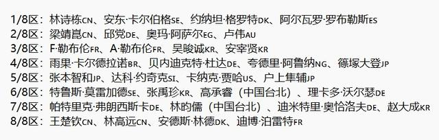 相比之下,外协会选手的签位也呈现出有趣的扎堆现象。法国的勒布伦兄弟,就像一对并肩作战的孪生勇士,一同出现在 3/8 区;韩国的吴晙诚与安宰贤,也如同紧密相连的战友,在 3/8 区蓄势待发;日本的张本智和与户上隼辅,宛如两颗相互辉映的星星,齐聚 5/8 区;德国的弗朗西斯卡与奥恰洛夫,则在 7/8 区严阵以待。这些外协会选手的扎堆,无疑为比赛增添了更多的看点和火药味。