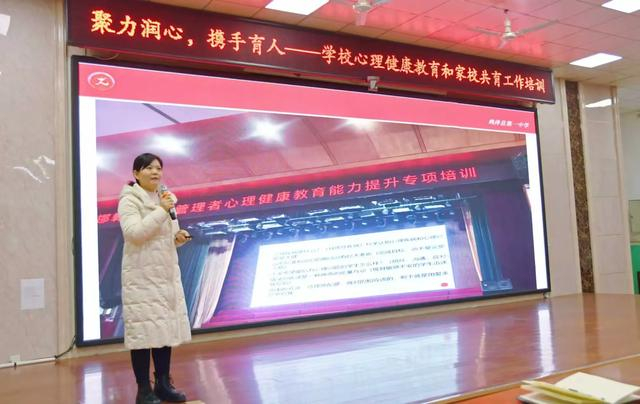 12月30日,邯郸鸡泽一中在南雅报告厅举办心理健康教育和家校共育工作培训,副校长党江丽担任主讲。校长胡贺军出席活动,全体班主任、青年教师参加。