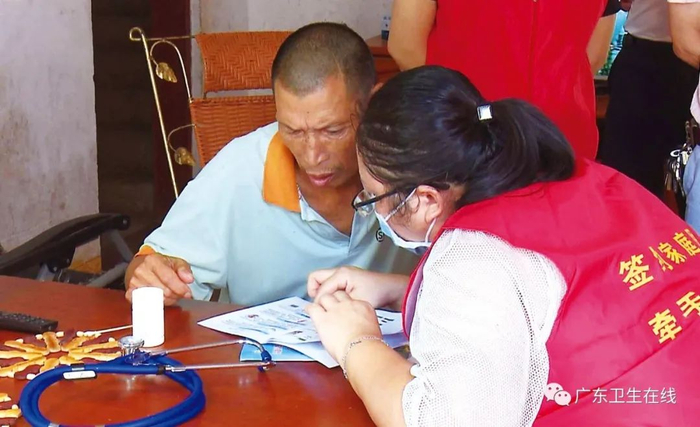 ▲家庭医生挨家挨户上门为村民体检加快人才队伍建设速度
