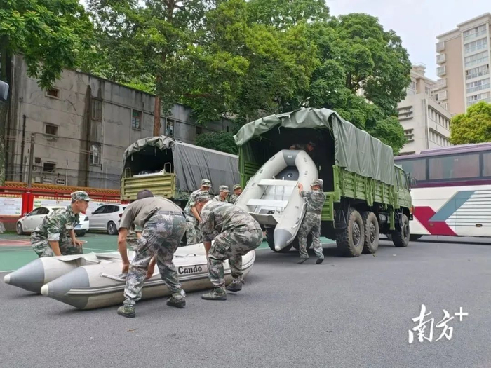 ▲此前,汕头市潮阳区人武部做好抗击台风准备。潮州:复课、复工、复产、复运、复业