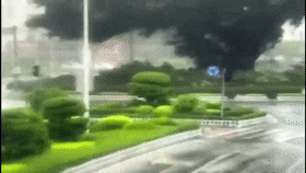 ▲泉州南安崎峰转盘大榕树被强风吹倒