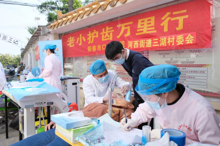 在广东省阳春市,“老小护齿万里行”公益义诊活动所到之处,总有一面写着“阳春市口腔医院党支部”的鲜红旗帜高高飘扬。