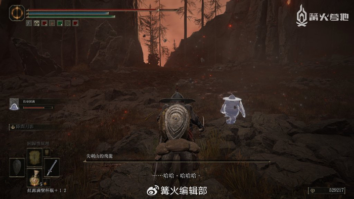 从北边一路朝着尖刺山前进,杀死下图处的「尖刺山的飞龙」,会发现埃贡就在附近,与之对话获得「贵重物品 - 埃贡的勾指」。