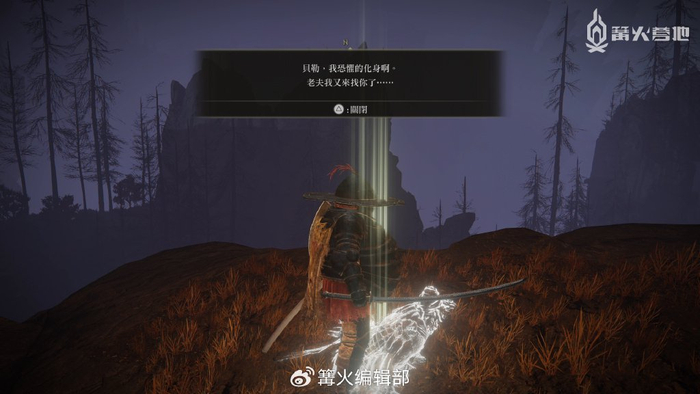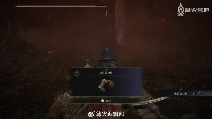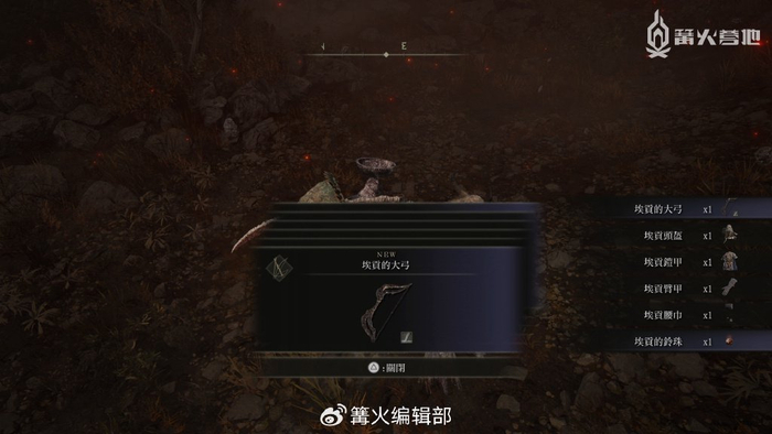 战胜 Boss「狂龙 贝勒」后,回到之前给勾指的位置,可以捡到埃贡的套装,以及武器和铃珠。