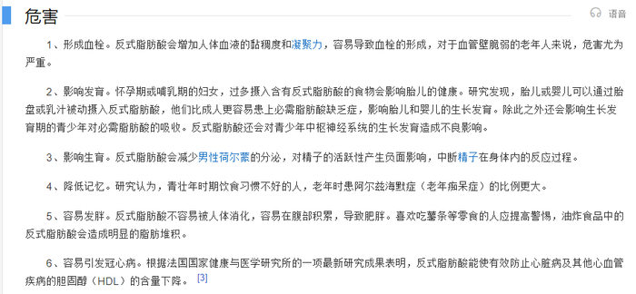 工业产生的反式脂肪酸对于人体健康没有任何已知的好处。