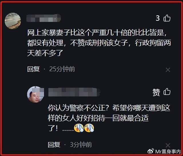 网上家暴妻子比这个严重几十倍的比比皆是,都没有处理,不赞成刑拘该女子,行政拘留两天差不多了。