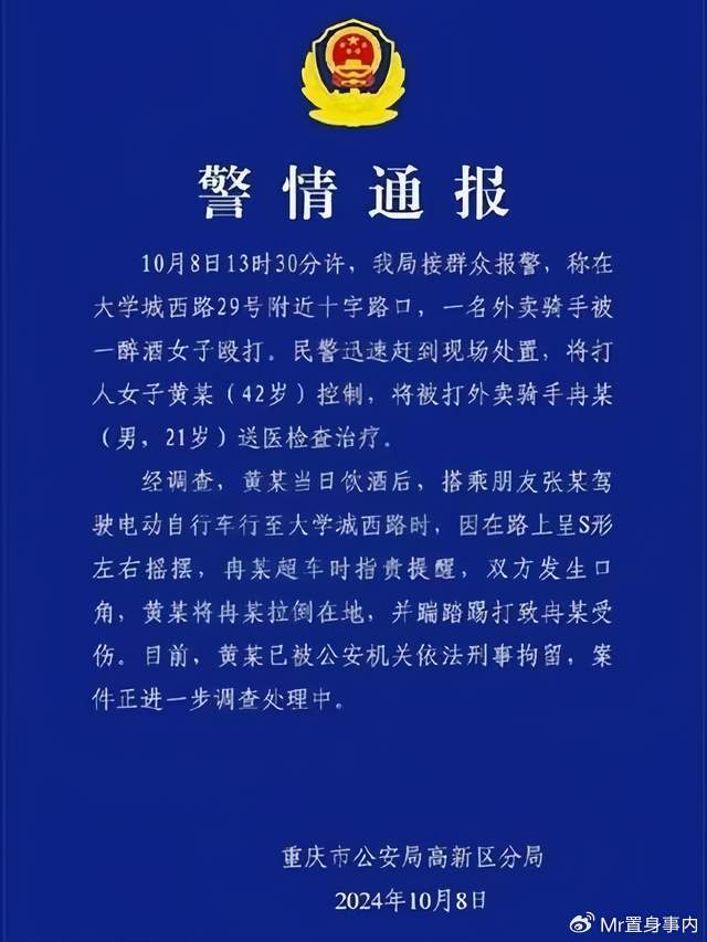 整个施暴过程,外卖小哥全程未还手,不是他打不过一个醉酒女子,而是怕一旦动手,就会被判定为互殴,甚至还可能成为加害者。而这个未动手的决定,也换来了“女子被刑拘”的处罚。