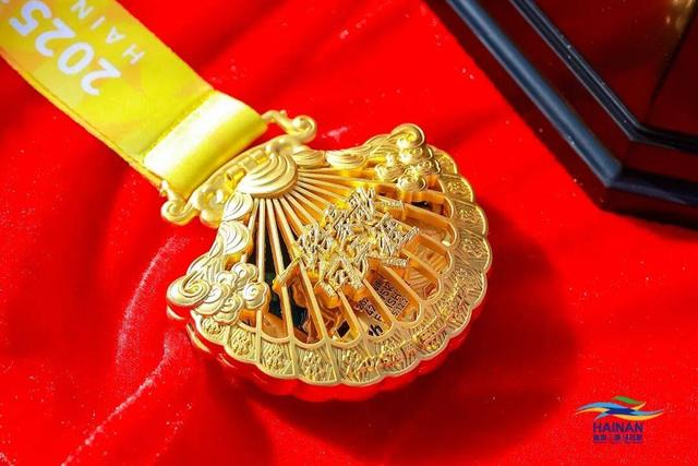三亚马拉松的完赛奖牌与赛道服务,也浸润着独特的海岛文化。奖牌整体造型复刻了贝壳随潮汐翕张的韵律,仿佛呼应着选手奔跑的节奏。更显巧思的是,其中嵌有可拆卸的海螺造型磁吸部件——它既能与奖牌浑然一体,也可单独取下作为冰箱贴使用,让赛事的独有记忆以更灵动的方式被珍藏。